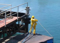 This pump operating at 2,800 bar is ideal for spot blasting steel structures and onboard ships while the ship is at sea.